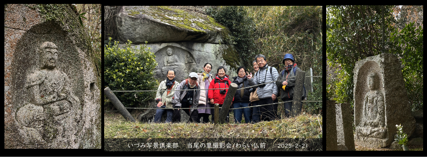 8名の参加により終了しました。雪の朝でしたが、撮影の時には雪は消え、晴間と曇りの繰り返しの午前中でした。9時半より浄瑠璃寺を出発し、ゆっくりと撮影を楽しみながら石仏の路を辿り、思い思いの撮影がなされました。12時ジャストに岩船寺にたどり着き解散となりました。今回も駐車場で倉山さんにおせわになりました。さてどんな写真が例会にて発表されるでしょうか? 楽しみです。