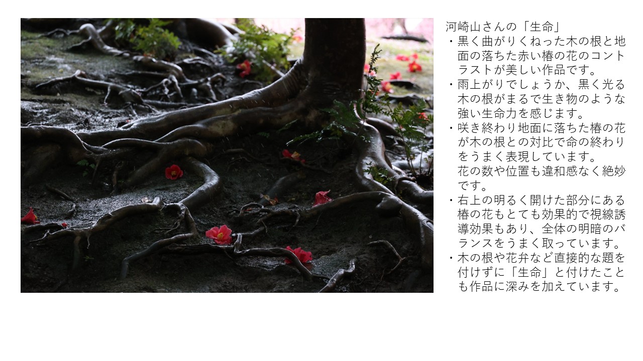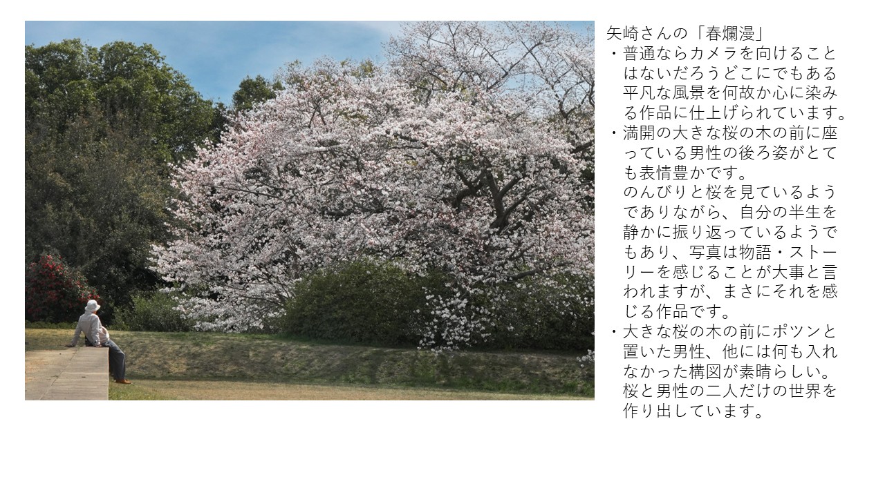 ■月選出作品 2025-4月 月選出作品(互選会、講師・選) 2025-05-02 ■ 互選会・選 偶数月の互選会により会員が選んだ三作品 ■ 中山講師・選―講評 奇数月の中山講師による選出作品(原則三作品・寸前作品) ⁂ 選出は原則3作品となっていますが、点数が分散し下位同点が7作品となり上位同点二点のみとしました ⁂ 講師・選は 4作品となりました。 ⁂ 選の順番はありません。 2025-4月 月選出作品(順不同) 互選会 選 中山講師 選・講評 私もカメラマン 村上政子 華かんざし 矢崎英夫