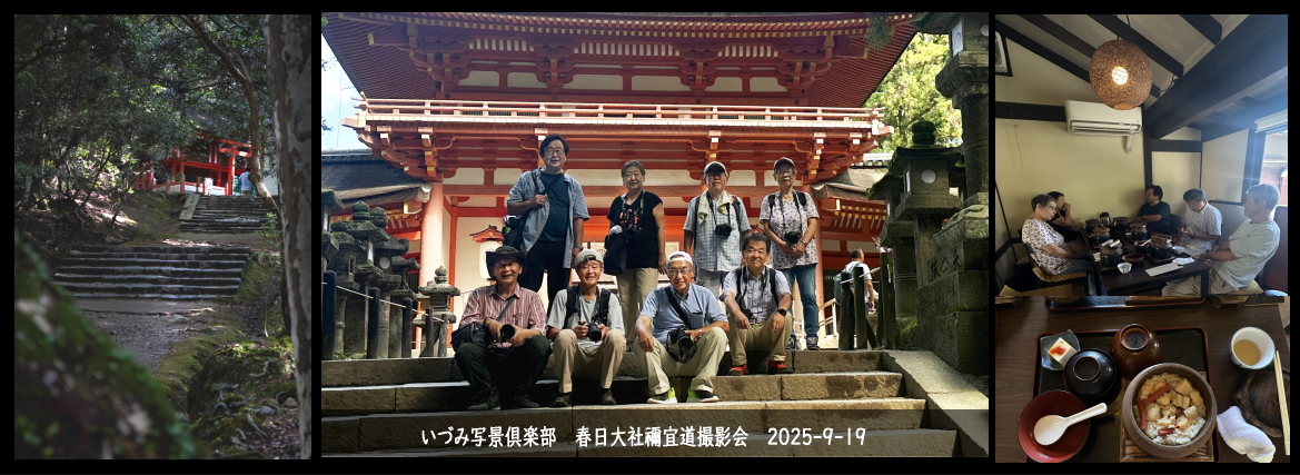 | 概要 開催地 上の禰宜道、下の禰宜道 開催日時 2025年9月19日(金) 集 合 現地 交通手段 自家用車乗り合い A号車 4人 B号車 2人 C号車 2人 費 用 290円(移動代) 必要経費 参加者分担 駐車場代 0 円/台 入山料 高齢者500円、一般1000円/人 自由参加 出席者 写真参照 連絡先 森本 参 考 紹介HP https://www.akame48taki.com/ |