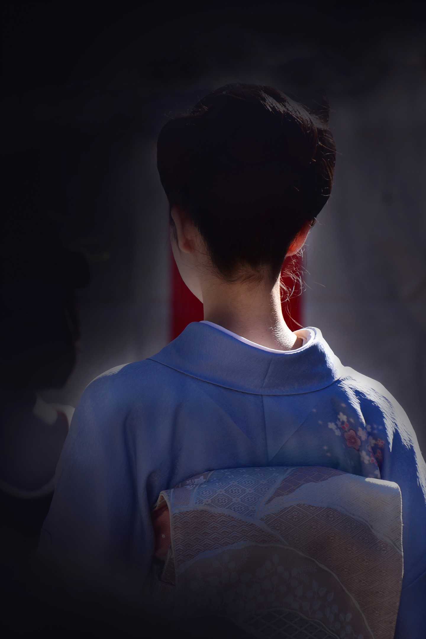 ・着物女性のうなじに当たる柔らかな光と、その光で輝く後れ 毛の捉え方には光の扱い方の上手さを感じます。